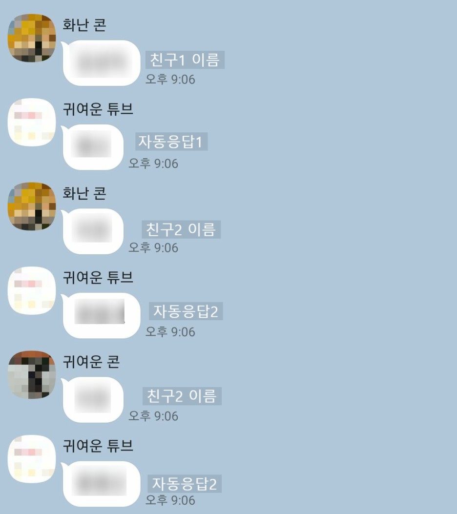 ex) 멀리서 일하는 친구가 심심해할까봐 톡방에서 말할 때마다 자동으로 답장해주기